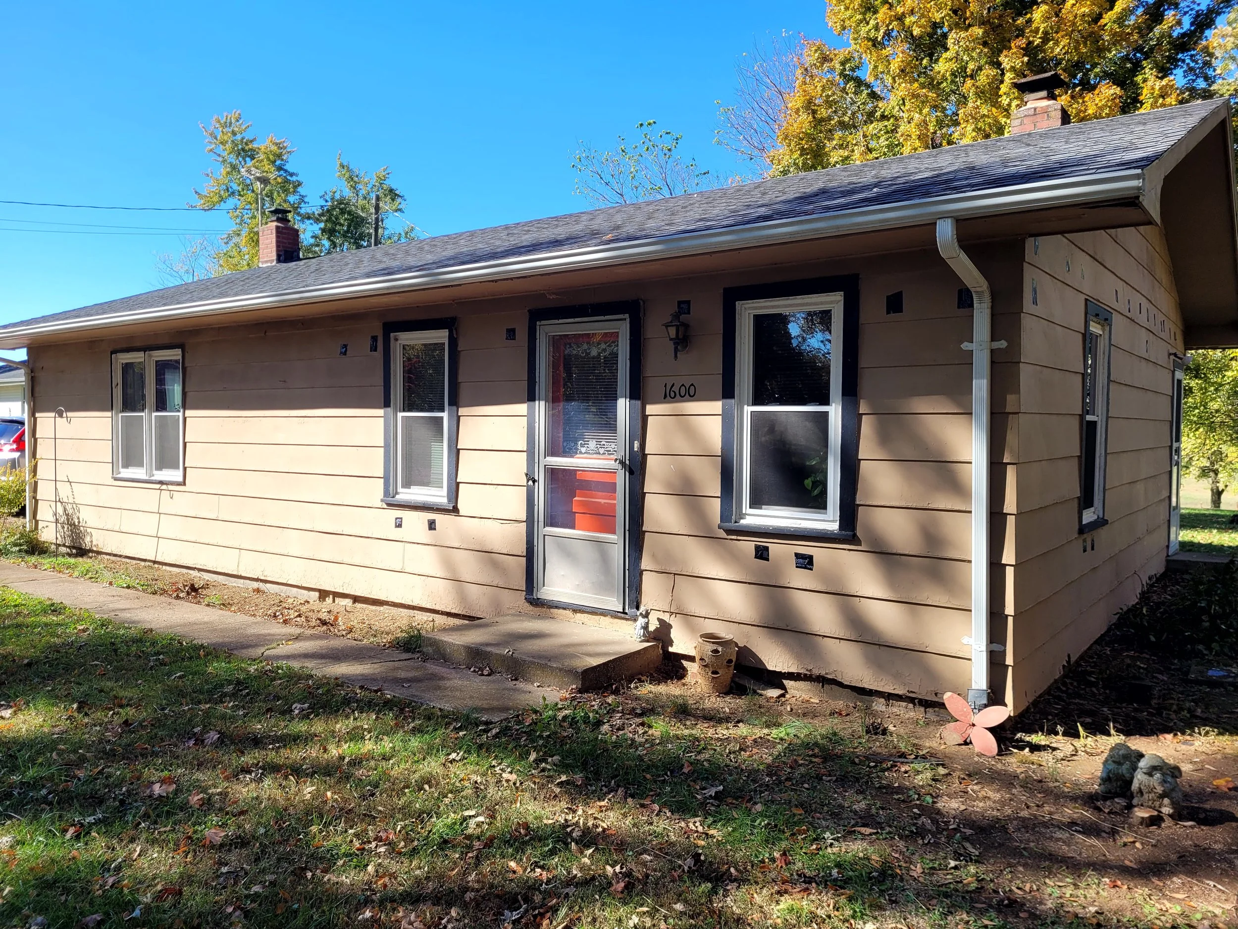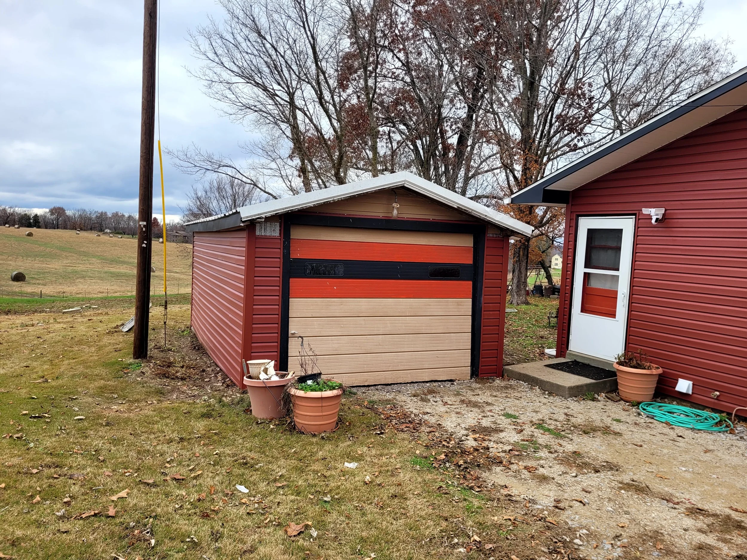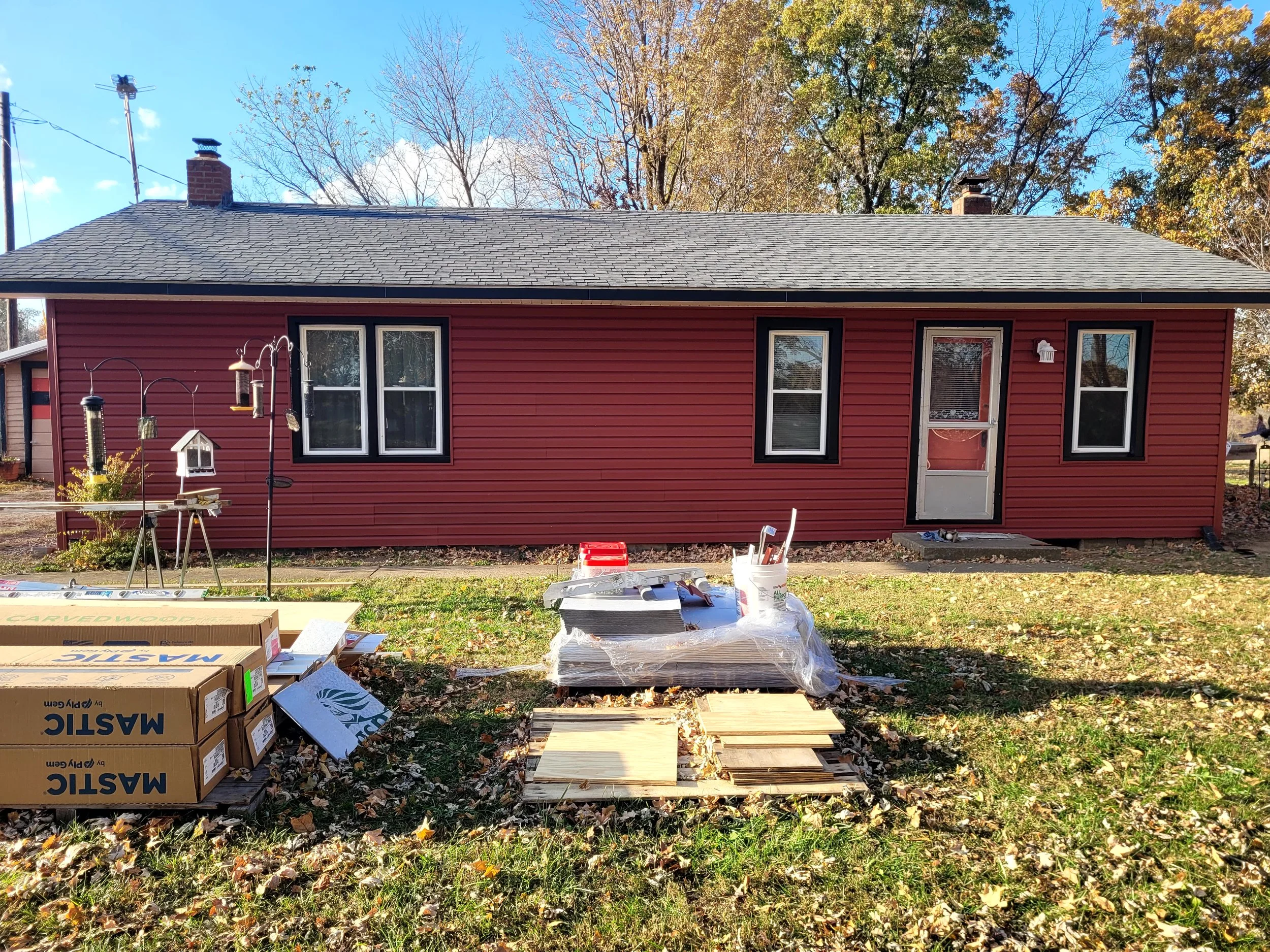 New siding, soffit, and fascia were installed on both the home and garage, paired with striking black window and fascia trim for a sharp, updated look that boosts curb appeal and durability.