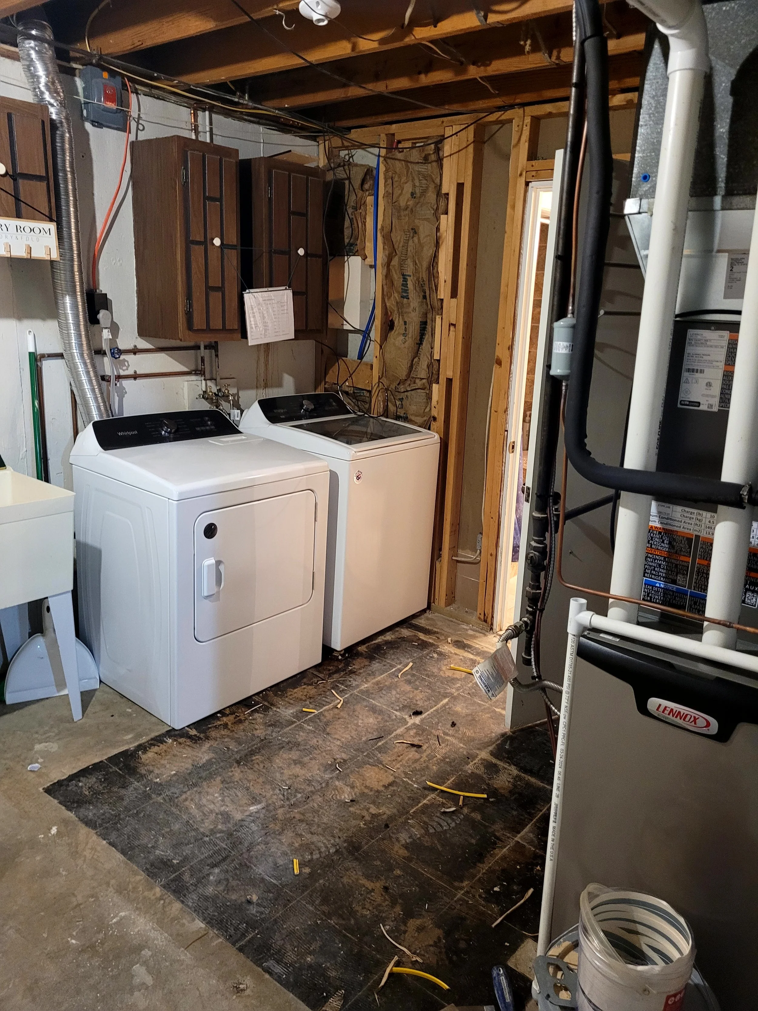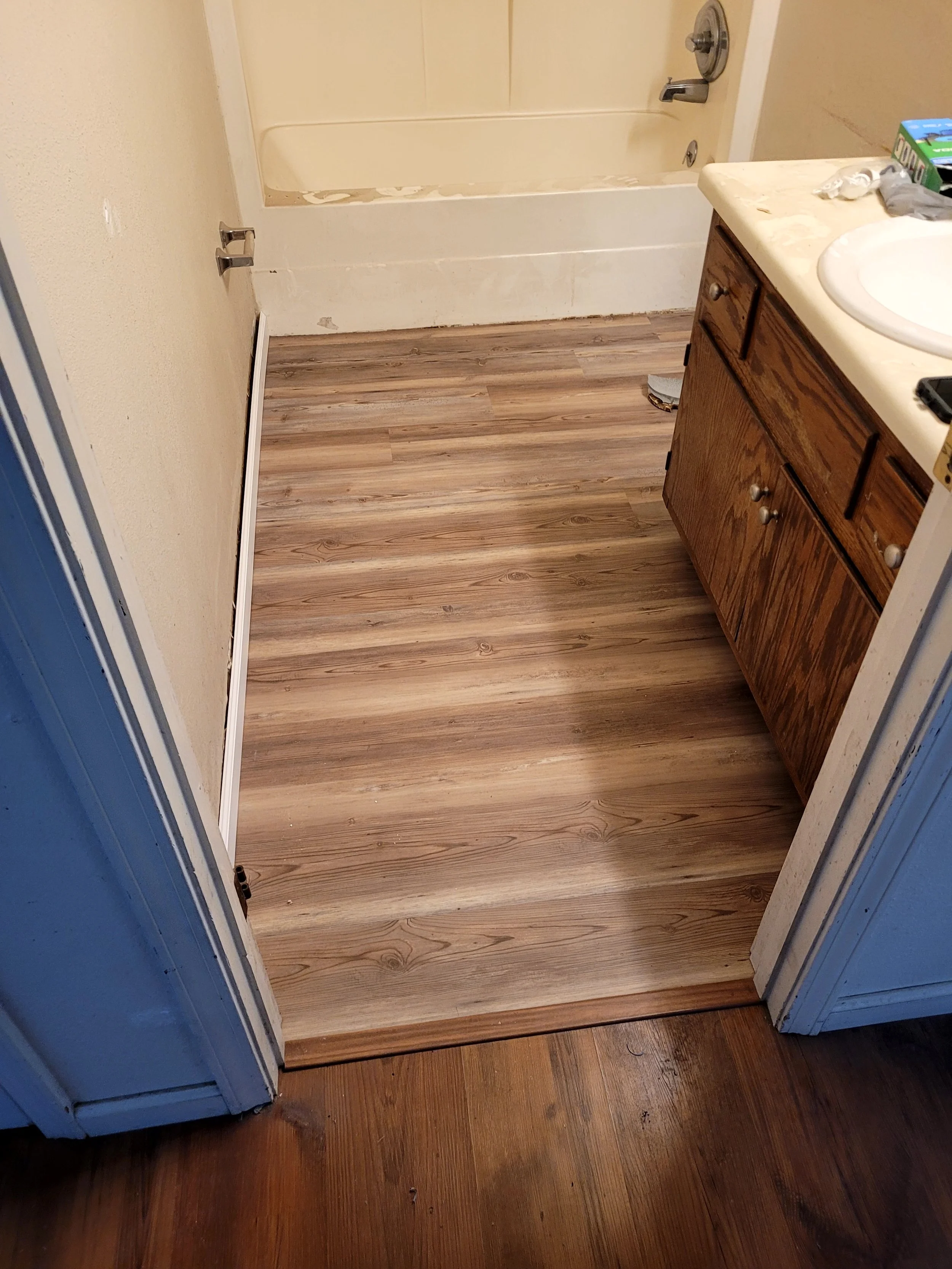 Old ceramic tile removed, moisture barrier installed, and brand-new waterproof LVP laid to keep this rental protected, clean, and ready for its next tenants.